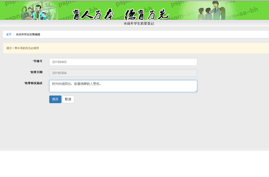 - 02关注信息管理: 包括学生严重不良行为管理、学生欺侮管理、未成年学生犯罪管理、专兼职心理健康教师管理。